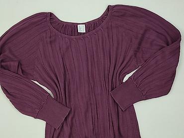 Sweter damski, fuksjowy/fioletowy, dzianina z delikatnym „włosem”, dekolt w kształcie litery V, długie rękawy, ściągacze przy mankietach i u dołu. - Materiał: 30% akryl, 70% nylon - Pochodzenie: M...