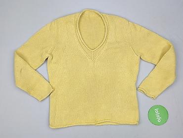 Żółty sweter damski Jew St. John, rozmiar M - Materiał: 100% akryl (metka na zdjęciu) - Kolor: pastelowy żółty - Fason: klasyczny, z długim rękawem - Dekolt: delikatnie marszczony przy szyi, zapin...