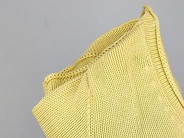Żółty sweter damski z dzianiny - Fason: luźny, z obniżoną linią ramion; rękawy około 3/4 - Dekolt: łagodny, łódkowy - Długość: do bioder - Materiał: cienka, elastyczna dzianina (miękka w dotyku; g...
