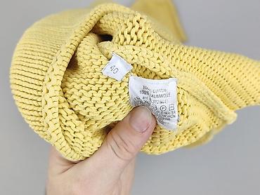 Sweter damski, musztardowy - Rozmiar: M (metka widoczna na zdjęciu) - Fason: dopasowany, prążkowana dzianina - Dekolt: okrągły - Rękaw: długi - Dół: lekko zaokrąglony z przodu i z tyłu - Detale: d...