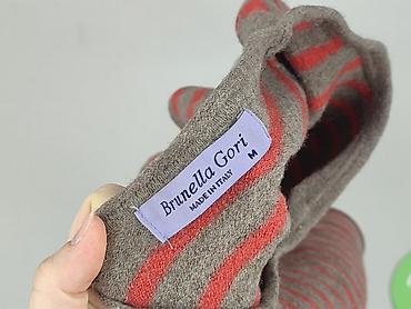 - Kolor: szary melanż z koralowo‑czerwonymi pasami