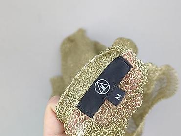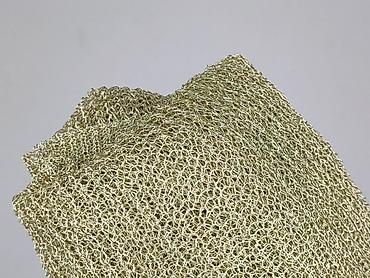 - Materiał: ażurowa, lekka, przewiewna dzianina o metalicznym, złotym połysku (efektowne, błyszczące włókno).