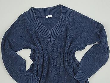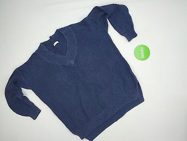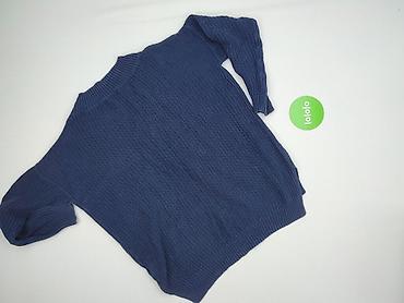 Sweter damski, granatowy, dzianinowy - Krój: klasyczny, z okrągłym dekoltem - Rękawy: długie, zakończone ściągaczem - Splot: mieszany – przód z dekoracyjnymi warkoczami i panelami o różnej fakturz...