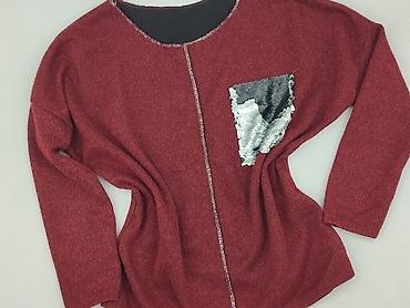 Damski sweter w kolorze czerwonego wina z ozdobami - Klasyczny krój z długim rękawem - Okrągły dekolt bogato zdobiony: cekiny i koraliki w odcieniach czerwieni w kilku rzędach - Dopasowane zdobien...Rozmiar: