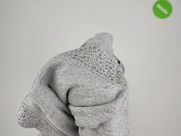 Szary sweter/bluza damska z miękkiej, melanżowej dzianiny. Luźny, oversize’owy krój z obniżoną linią ramion i rękawami 3/4 zakończonymi szerokimi mankietami. Okrągły dekolt. Tył wyraźnie dłuższy ni...