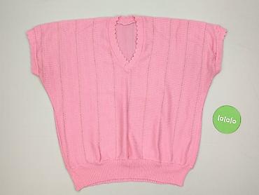 Sweter damski bez rękawów Haiqi, rozmiar L - Kolor: różowy z czarnymi, poziomymi paskami - Fason: bez rękawów, dopasowany, długość do bioder - Dekolt: głęboki w kształcie litery V z szeroką, prążk...