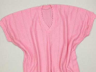 Ażurowy sweter damski, różowy pastel - Rozmiar: L (z metki) - Skład: 100% poliester - Fason: luźniejszy, dzianina ażurowa z dekoracyjnym, liściastym splotem - Dekolt: w kształcie litery V z szerok...Rozmiar:
