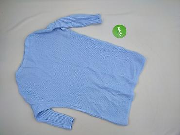 Sweter damski z dekoltem V – błękitny - Fason: klasyczny sweter z dekoltem w serek, długie rękawy, ściągacze przy mankietach i u dołu - Kolor: intensywny błękit - Rozmiar z metki: M - Dzianina: mi...