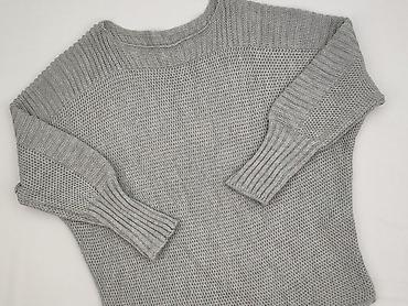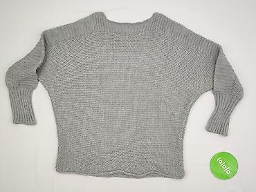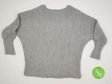 Sweter dzianinowy damski – jasnoszary - Fason: luźny, oversize z szerokimi rękawami typu kimono/dolman - Dekolt: łagodnie łódkowy - Długość: do bioder - Splot: wyraźna, miękka dzianina o drobnym, ...