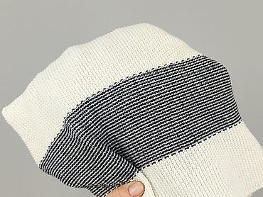 Damski sweter/bluzka z krótkim rękawem w paski - Krój: klasyczny, lekko pudełkowy, krótkie rękawy - Wzór: poziome paski w kolorach bieli i jasnego błękitu - Dzianina: średniej grubości, miękka, el...