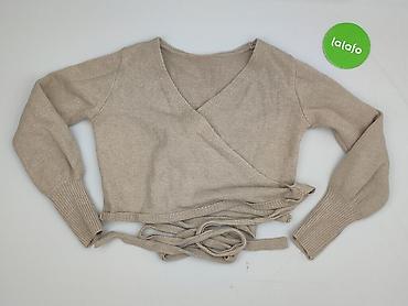 Beżowy sweter/bluzka damska z długim rękawem - Rozmiar: S (WOMEN S – na metce) - Krój: prosty, dekolt w serek (V-neck) - Rękawy: długie - Dół: tunel ze sznurkiem do regulacji/ściągnięcia - Materia...
