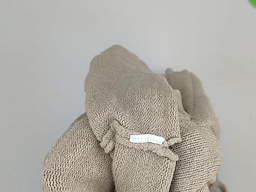Beżowy sweter damski z dekoltem w serek - Krój: luźny, opuszczona linia ramion - Rękawy: długie - Dekolt: V-neck - Dół: delikatnie zaokrąglony z przodu i z tyłu - Tkanina: miękka, dzianinowa o dro...