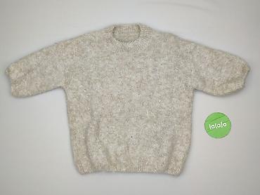 Damski sweter z długim rękawem, „włochaty”, kremowy/ecru. - Rozmiar: M (EU M) – metka. - Fason: klasyczny pulower z okrągłym dekoltem, lekko wydłużony dół. - Dzianina o wyraźnym, ażurowym splocie i...
