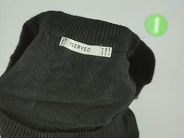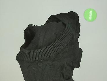 Czarny sweter damski ebelieve, rozmiar S/M. - Fason oversize z obniżoną linią ramion i dłuższym, zaokrąglonym dołem - Rękawy dopasowane przy nadgarstkach - Dzianina w prążek z dekoracyjnym, subtel...