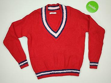 Czerwony sweter damski z dekoltem w serek - Rozmiar: S (EUR S, US S, CA S, CN 165/88A, MX CH – zgodnie z metką) - Krój: klasyczny, długi rękaw, szeroki ściągacz u dołu i przy mankietach - Dekolt: ...