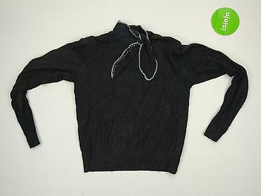 Czarny sweter damski Reserved, rozmiar S. - Krój: klasyczny, lekko dopasowany, rękaw 3/4 - Dekolt: okrągły, ozdobiony efektowną aplikacją/łańcuszkiem w kolorze srebrnym - Materiał: 70% akryl, 30% ...