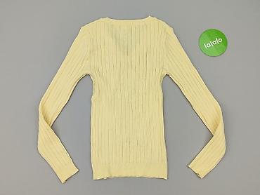 Sweter damski prążkowany, żółty - Fason: dopasowany, elastyczny - Dekolt: w kształcie litery V - Rękaw: długi - Dzianina: miękka, sprężysta, prążkowana (widoczna struktura) - Długość: standardowa,...Rozmiar: