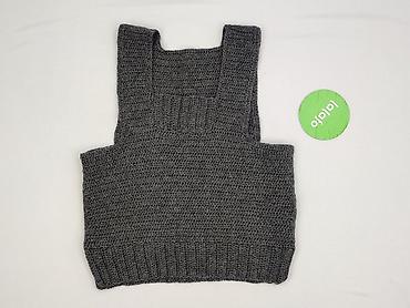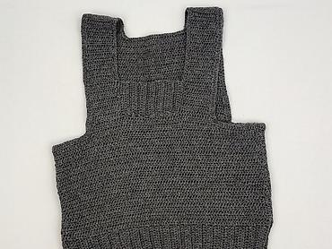Damska ażurowa kamizelka/sweterek bez rękawów - Kolor: grafitowy z delikatną przędzą z połyskiem - Fason: bez rękawów, dekolt w serek, dzianina ażurowa (koronkowy ścieg), ściągacz na dole - Dodatk...