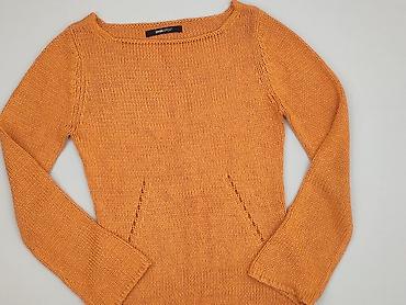 Sweter damski, prążkowany, pomarańczowy - Krój: dopasowany, dzianina o wyraźnym, elastycznym ściągaczu - Dekolt: szeroki/łódkowy - Rękawy: długie - Rozmiar z metki: S - Skład: 100% poliester (info...