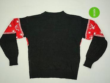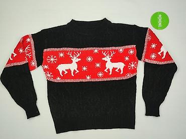 Czerwony świąteczny sweter damski z motywem reniferów i choinek - Rozmiar: M (metka na kołnierzu) - Fason: klasyczny, z okrągłym dekoltem; długie rękawy; ściągacze przy mankietach i u dołu - Wzór:...