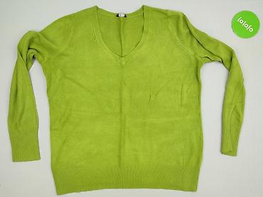 Zielony sweter damski z długim rękawem - Fason: klasyczny, dopasowany, długość do bioder - Dekolt: łódka - Rękawy: długie, zakończone szerokim ściągaczem - Splot/prążkowanie: przód z fakturowanym,...