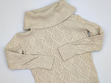 Sweter damski Reserved, rozmiar S - Kolor: jasny beż/ecru, melanż - Krój: swobodny, dłuższy tył; raglanowe rękawy - Golf: szeroki, miękki kołnierz typu turtleneck - Dzianina: prążkowana, pionowe i...