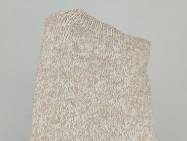 Sweter damski, beżowy, dzianinowy. - Krój: prosty, z lekko obniżoną linią ramion; długie rękawy z szerokimi ściągaczami. - Dekolt: łagodnie zaokrąglony. - Materiał: średniej grubości, miękka dzian...