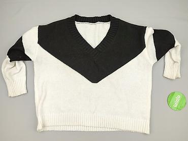 Sweter damski P-M, rozmiar z metki: XL/XXL. - Kolor: jasnoszary, z delikatnym, błyszczącym połyskiem - Fason: klasyczny, dopasowany, z okrągłym dekoltem - Dzianina: prążkowana pionowo; po bokach s...