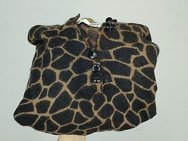 Damski sweter z dzianiny, wzór moro - Fason: luźny, z lekkim wcięciem w talii i delikatnie dłuższym dołem z tyłu - Rękaw: 3/4 - Dekolt: okrągły, ściągacz przy dekolcie i na dole - Wzór/kolor: kamu...