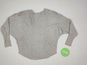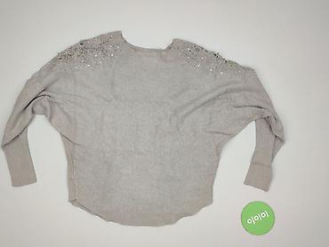 Szary sweter damski z ozdobnymi dżetami – S&S Millenium, rozmiar TU. - Delikatny dzianinowy sweter z okrągłym dekoltem - Przód zdobiony drobnymi, połyskującymi dżetami w srebrnym odcieniu - Długi ...