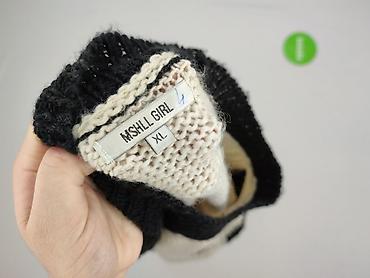Sweter damski 1XL, 100% poliester - Fason: klasyczny, z okrągłym dekoltem i długim rękawem - Wzór/kolor: szerokie poziome pasy w odcieniach czerni, szarości i bieli; subtelne kontrastowe przeszyci...