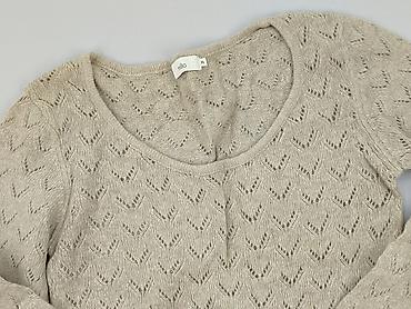 Sweter damski, beżowy, dzianinowy. - Krój: prosty, z lekko obniżoną linią ramion; długie rękawy z szerokimi ściągaczami. - Dekolt: łagodnie zaokrąglony. - Materiał: średniej grubości, miękka dzian...