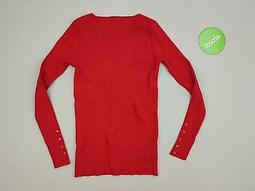 Sweter damski F&F, czerwony - Fason: dopasowany, z długim rękawem - Dekolt: głęboki V z ozdobnym marszczeniem na środku - Ściągacze: szeroki ściągacz u dołu i przy mankietach - Rozmiar z metki: 36...