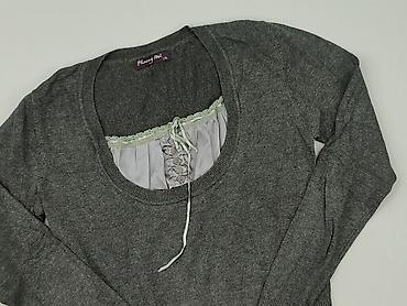 Damski sweter/bluzka z długim rękawem Sinsay - Rozmiar: XL (z metki) - Kolor: melanż szaro-czarny - Krój: lekko zaokrąglony dół, dekolt okrągły - Detale: wstawki z czarnego materiału na ramionach ...
