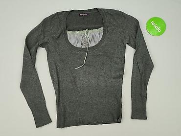 Sweter damski X&J, rozmiar L/XL - Kolor: jasnoszary (melanż) - Fason: dopasowany, długość do bioder, długi rękaw, ściągacze przy mankietach i na dole - Dekolt: głęboki V z koronkową lamówką - Ozdo...
