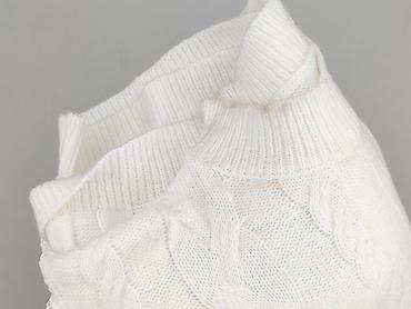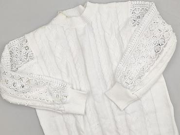 Sweter damski z koronkowymi rękawami, biały, rozmiar XL - Fason: klasyczny sweter z warkoczowym splotem na przodzie i tyle, półgolf (wysoki, prążkowany kołnierz). - Rękawy: długie, z transparentne...