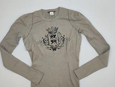 Sweter dziewczęcy z dzianiny, beżowy z karmelowym wzorem „C” w romby. - Krój: luźny, z obniżoną linią ramion - Dekolt: okrągły, prążkowany ściągacz - Rękawy: długie, wykończone ściągaczem - Dół: pr...