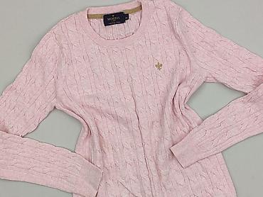 Damski sweter dzianinowy w kolorze pudrowego różu - Fason: klasyczny, z okrągłym dekoltem - Rękawy: długie - Wykończenia: elastyczne ściągacze przy dekolcie, mankietach i u dołu - Splot: drobny, r...