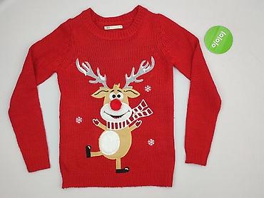 Sweter damski świąteczny Esmara - Model: sweter z okrągłym dekoltem - Kolor: intensywna czerwień - Wzór: duży renifer na przodzie, białe śnieżynki i diamenty; dół w kontrastowej bieli - Materiał: ...