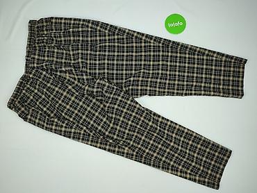 Damskie spodnie w kratę (wzór typu glen check) z paskiem w tym samym materiale. - Rozmiar z metki: L/XL - Kolorystyka: odcienie szarości z ciemnymi liniami kraty - Fason: zwężane nogawki, średni...