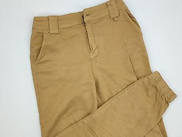 Damskie spodnie w kolorze khaki/oliwkowym, fason typu jogger z eleganckim wykończeniem. Najważniejsze cechy: - Talia: wysoka, elastyczna gumka + szlufki na pasek - Zapięcie: brak klasycznego zapię...Rozmiar: