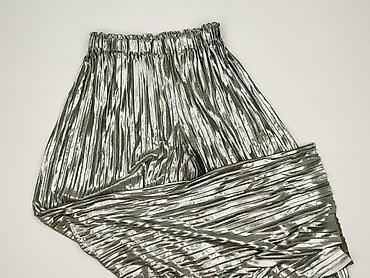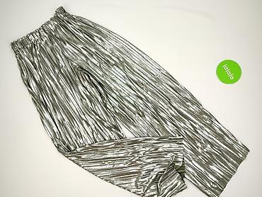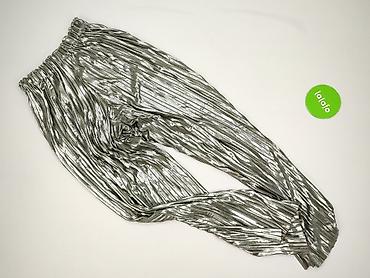 Damskie spodnie z połyskiem – srebrne - Fason: dzwony/lekko rozszerzane nogawki - Talia: elastyczna guma, wysoki komfort noszenia - Materiał: 95% poliester, 5% elastan – elastyczne, miękkie, z met...Stan: