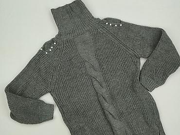 Sweter damski z golfem, dzianinowy, kolor jasnoszary/melange. - Fason: dłuższy sweter z wysokim, szerokim golfem; rękawy długie. - Splot: wyraźna, gruba faktura o strukturalnym, „koszykowym” wzorz...