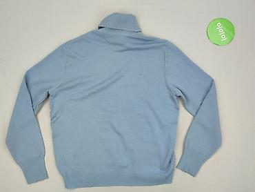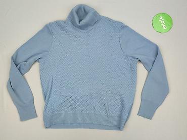 Sweter damski z golfem, błękitny - Fason: dłuższy, lekko dopasowany, dzianinowy - Kołnierz: obszerny golf z miękkiej, pętelkowej dzianiny (efekt frote) - Rękawy: długie, zakończone szerokimi manki...Stan: