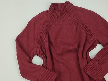 Sweter damski z golfem, czerwono-bordowy, S/M - Fason: dopasowany, z wysokim, elastycznym golfem - Rękaw: krótki, szeroki ściągacz - Dzianina: przód z pionowym warkoczowym splotem, tył w prążki; d...