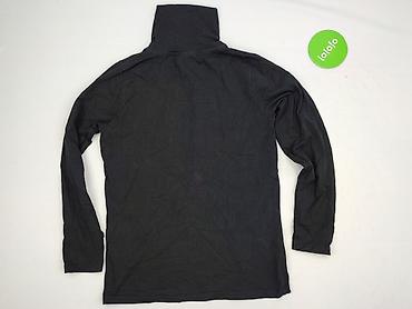 Czarny, dzianinowy golf damski, rozmiar M. - Fason: obcisły golf z wysoką stójką, rękawy dł. do nadgarstka, drobny pionowy ściągacz na całej powierzchni. - Materiał: 100% akryl (metka). - Wyprod...