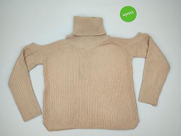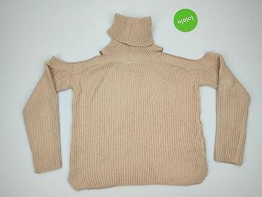 Sweter damski z golfem, beżowy, dzianina - Fason: dopasowany sweter z wysokim, szerokim golfem - Długość: do bioder - Rękawy: długie - Dzianina: grubszy, miękki splot o wyraźnej fakturze - Kolor: ...