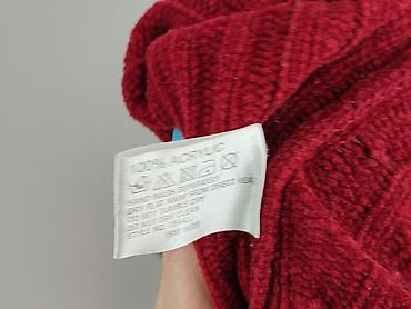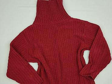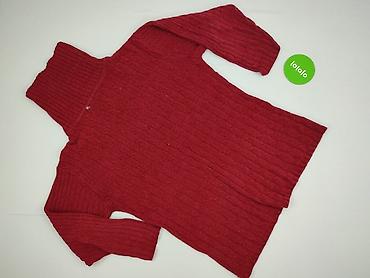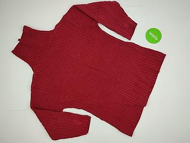 Sweter damski z golfem, czerwono-bordowy, S/M - Fason: dopasowany, z wysokim, elastycznym golfem - Rękaw: krótki, szeroki ściągacz - Dzianina: przód z pionowym warkoczowym splotem, tył w prążki; d...