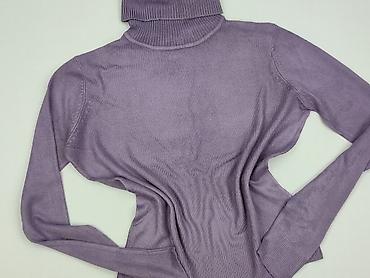 Fioletowy sweter damski z golfem - Fason: dopasowany, prążkowany splot - Dekolt: wysoki golf, elastyczny i miękki - Rękawy: długie - Materiał: dzianina elastyczna (przyjemna w dotyku, dobrze się r...Rozmiar: