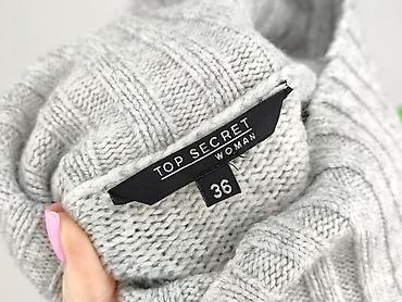 Sweter damski Top Secret, rozmiar 36 - Kolor: kremowy/ecru - Fason: dopasowany, dłuższy, z szerokim ściągaczem u dołu - Golf: wysoki, miękki, wywijany - Rękawy: długie, zakończone ściągaczami - Sp...